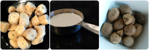 Three ingredients, people…here they are: bananas, almond milk, nutmeg (or cinnamon):